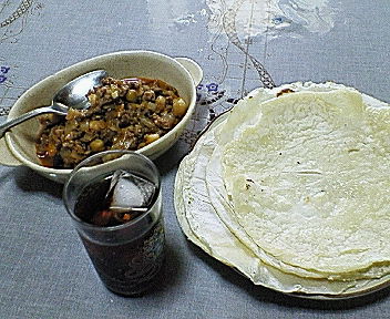 中に入れるチリはもちろん、トルティーヤも手作りです。